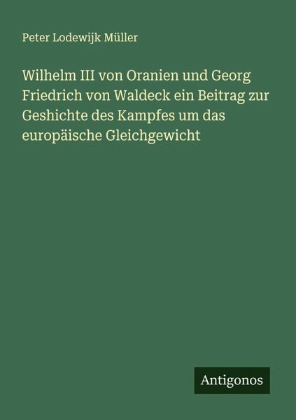 Wilhelm III von Oranien und Georg Friedrich von Waldeck ein Beitrag zur Geshichte des Kampfes um das europäische Gleichgewicht