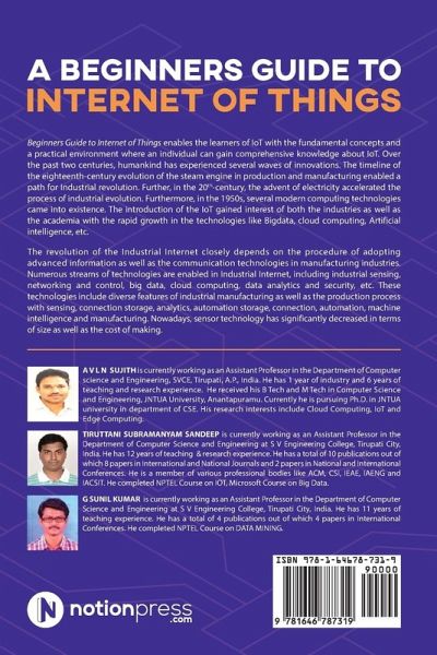 Beginners Guide to Internet of Things enables the learners of IoT with the fundamental concepts and a practical environment where an individual can gain comprehensive knowledge about IoT. Over the past two centuries, humankind has experienced several waves of innovations. The timeline of the eighteenth-century evolution of the steam engine in production and manufacturing enabled a path for Industrial revolution. Further, in the 20th-century, the advent of electricity accelerated the process of industrial evolution. Furthermore, in the 1950s, several modern computing technologies came into e...