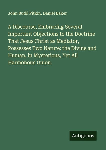 A Discourse, Embracing Several Important Objections to the Doctrine That Jesus Christ as Mediator, Possesses Two Nature: the Divine and Human, in Mysterious, Yet All Harmonous Union.