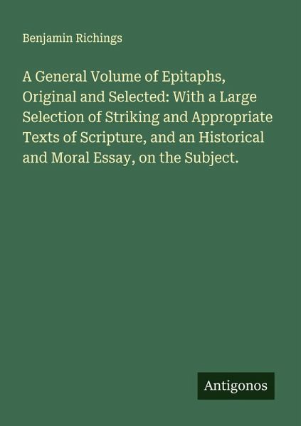 A General Volume of Epitaphs, Original and Selected: With a Large Selection of Striking and Appropriate Texts of Scripture, and an Historical and Moral Essay, on the Subject.