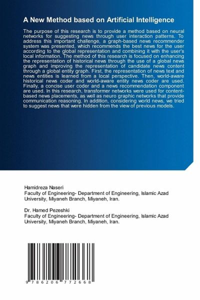 The purpose of this research is to provide a method based on neural networks for suggesting news through user interaction patterns. To address this important challenge, a graph-based news recommender system was presented, which recommends the best news for the user according to the global representation and combining it with the user's local information. The method of this research is focused on enhancing the representation of historical news through the use of a global news graph and improving the representation of candidate news content through a global entity graph. First, the representatio...