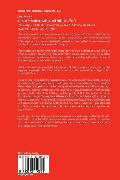 The international conference on Automation and Robotics-ICAR2011 is held during December 12-13, 2011 in Dubai, UAE. The proceedings of ICAR2011 have been published by Springer Lecture Notes in Electrical Engineering, which include 163 excellent papers selected from more than 400 submitted papers.