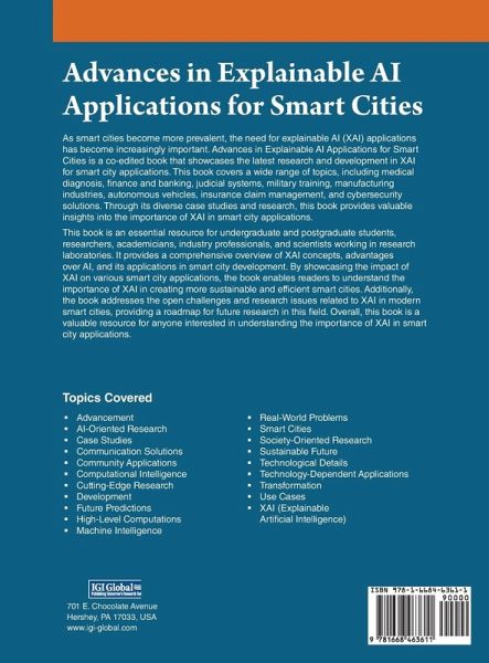 As smart cities become more prevalent, the need for explainable AI (XAI) applications has become increasingly important. Advances in Explainable AI Applications for Smart Cities is a co-edited book that showcases the latest research and development in XAI for smart city applications. This book covers a wide range of topics, including medical diagnosis, finance and banking, judicial systems, military training, manufacturing industries, autonomous vehicles, insurance claim management, and cybersecurity solutions. Through its diverse case studies and research, this book provides valuable insights...