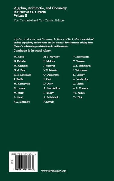 Algebra, Arithmetic, and Geometry: In Honor of Yu. I. Manin consists ofinvited expository and research articles on new developments arising fromManin's outstanding contributions to mathematics.