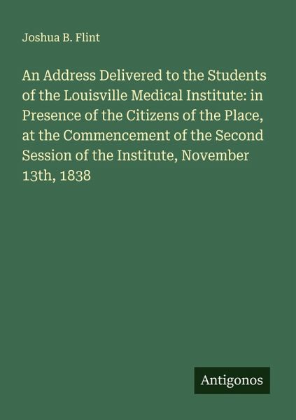 An Address Delivered to the Students of the Louisville Medical Institute: in Presence of the Citizens of the Place, at the Commencement of the Second Session of the Institute, November 13th, 1838