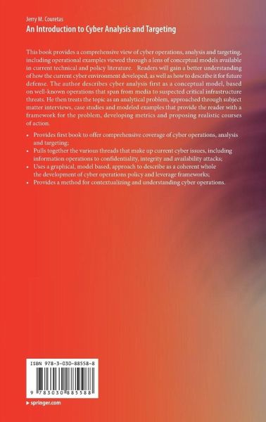 This book provides a comprehensive view of cyber operations, analysis and targeting, including operational examples viewed through a lens of conceptual models available in current technical and policy literature. Readers will gain a better understanding of how the current cyber environment developed, as well as how to describe it for future defense. The author describes cyber analysis first as a conceptual model, based on well-known operations that span from media to suspected critical infrastructure threats. He then treats the topic as an analytical problem, approached through subject matter interviews, case studies and modeled examples that provide the reader with a framework for the problem, developing metrics and proposing realistic courses of action.