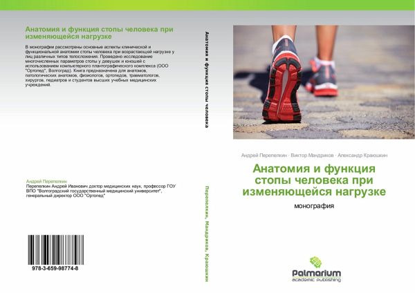 V monografii rassmotreny osnovnye aspekty klinicheskoy i funktsional'noy anatomii stopy cheloveka pri vozrastayushchey nagruzke u lits razlichnykh tipov teloslozheniya. Provedeno issledovanie mnogochislennykh parametrov stopy u devushek i yunoshey s ispol'zovaniem komp'yuternogo plantograficheskogo kompleksa (OOO "Ortoped", Volgograd). Kniga prednaznachena dlya anatomov, patologicheskikh anatomov, fiziologov, ortopedov, travmatologov, khirurgov, pediatrov i studentov vysshikh uchebnykh meditsinskikh uchrezhdeniy.