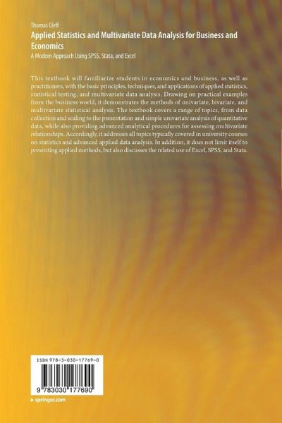 This textbook will familiarize students in economics and business, as well as practitioners, with the basic principles, techniques, and applications of applied statistics, statistical testing, and multivariate data analysis. Drawing on practical examples from the business world, it demonstrates the methods of univariate, bivariate, and multivariate statistical analysis. The textbook covers a range of topics, from data collection and scaling to the presentation and simple univariate analysis of quantitative data, while also providing advanced analytical procedures for assessing multivariate relationships. Accordingly, it addresses all topics typically covered in university courses on statistics and advanced applied data analysis. In addition, it does not limit itself to presenting applied methods, but also discusses the related use of Excel, SPSS, and Stata.
