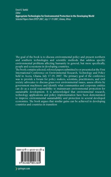 This book is the first edited compilation of selected, refereed papers submitted to ERTEP 2007. The selected papers either dealt with technologies or scientific work and policy findings that address specific environmental problems affecting humanity in general, but more specifically, people and ecosystems in developing countries. It was not necessary for the work to have been done in a developing country, but the findings and results must be appropriate or applicable to a developing country setting. It is acknowledged that environmental research, technology applications and policy implementation have been demonstrated to improve environmental sustainability and protection in several developed economies. The main argument of the book is that similar gains can be achieved in developing economies and economies in transition. The book is organized into six chapters along some of the key themes discussed at the conference: Environmental Health Management, Sustainable Energy and Fuel, Water Treatment, Purification and Protection, Mining and Environment, Soil Stabilization, and Environmental Monitoring. It is hoped that the contents of the book will provide an insight into some of the environmental and health mana- ment challenges confronting the developing world and the steps being taken to address them.
