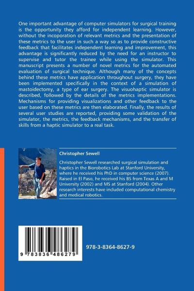 One important advantage of computer simulators for surgical training is the opportunity they afford for independent learning. However, without the incoporation of relevant metrics and the presentation of these metrics to the user in such a way so as to provide constructive feedback that facilitates independent learning and improvement, this advantage is significantly reduced by the need for an instructor to supervise and tutor the trainee while using the simulator. This manuscript presents a number of novel metrics for the automated evaluation of surgical technique. Although many of the concep...