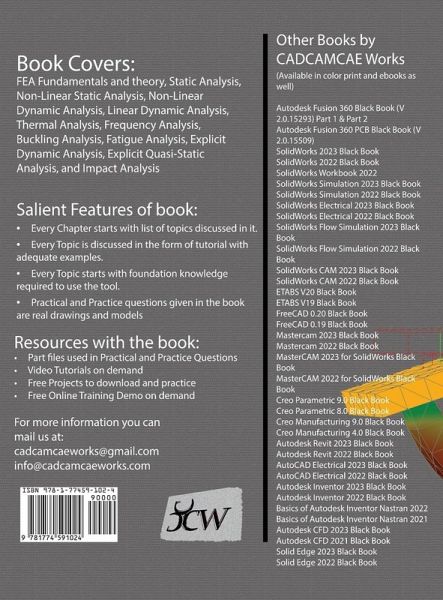 The Basics of Autodesk Inventor Nastran 2024 (Colored) is the new and updated 4th edition of our book on Autodesk Inventor Nastran. This book helps professionals as well as students in learning basics of Finite Element Analysis via Autodesk Inventor Nastran. The book follows a step-by-step methodology. This book explains the background work running behind your simulation analysis screen. The book starts with introduction to simulation and goes through all the analysis tools of Autodesk Inventor Nastran with practical examples of analysis. Chapter on manual FEA ensure the firm understanding of FEA concepts. Some of the salient features of this book are: In-Depth explanation of concepts Every new topic of this book starts with the explanation of basic concepts. In this way, the user becomes capable of relating the things with real world. Topics Covered Every chapter starts with a list of topics being covered in that chapter. In this way, the user can easy find the topic of his/her interest easily. Instruction through illustration The instructions to perform any action are provided by maximum number of illustrations so that the user can perform the actions discussed in the book easily and effectively. There are about 410 illustrations that make the learning process effective. Tutorial point of view The book explains the concepts through the tutorial to make the understanding of users firm and long lasting. Each chapter of the book has tutorials that are real world projects. Project Projects and exercises are provided to students for asking for more practice. For Faculty If you are a faculty member, then you can ask for video tutorials on any of the topic, exercise, tutorial, or concept. As faculty, you can register on our website to get electronic desk copies of our latest books, self-assessment, and solution of practical. Faculty resources are available in the Faculty Member page of our website once you login. Note that faculty registration approval is manual and it may take two days for approval before you can access the faculty website.