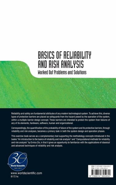 eliability and safety are fundamental attributes of any modern technological system. To achieve this, diverse types of protection barriers are placed as safeguards from the hazard posed by the operation of the system, within a multiple-barrier design concept. These barriers are intended to protect the system from failures of any of its elements, hardware, software, human and organizational. Correspondingly, the quantification of the probability of failure of the system and its protective barriers, through reliability and risk analyses, becomes a primary task in both the system design and operation phases. This exercise book serves as a complementary tool supporting the methodology concepts introduced in the books "An introduction to the basics of reliability and risk analysis" and "Computational methods for reliability and risk analysis" by Enrico Zio, in that it gives an opportunity to familiarize with the applications of classical and advanced techniques of reliability and risk analysis. This book is also available as a set with Computational Methods for Reliability and Risk Analysis and An Introduction to the Basics of Reliability and Risk Analysis.