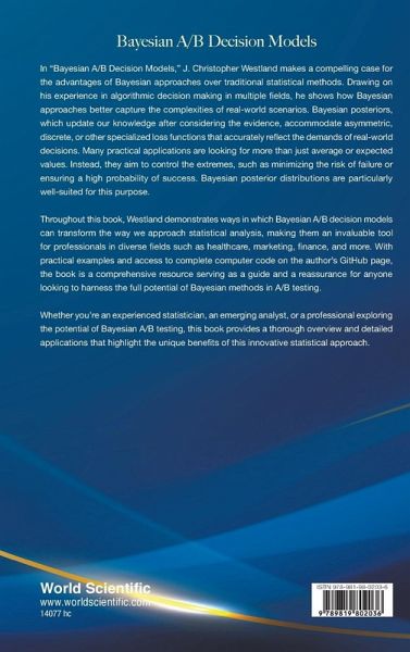 Bayesian A/B Decision Models encapsulates J Christopher Westland's deep expertise in algorithmic decision-making, honed through years of experience in specialized fields like auditing and serving as an expert witness in computing damages for corporate and industrial legal cases. While traditional statistical methods provide valuable insights, they often fall short of capturing the complexities of real-world scenarios that require sophisticated decision-making. Enter the Bayesian A/B decision model - a powerful alternative that offers the flexibility and adaptability essential for navigating the intricate demands of consultancy and legal expert roles. Westland has found the versatility of Bayesian A/B models to be particularly transformative, enabling him to respond effectively to diverse and dynamic requests for detailed analytical reports. This approach allows for the delivery of precise financial analyses and outcomes that are highly tailored and often beyond the reach of traditional methods. In the high-stakes arenas of legal and corporate deliberations, where the accuracy and adaptability of statistical analysis can be the tipping point, this advantage has proven invaluable. In Bayesian A/B Decision Models, Westland extends the application of Bayesian A/B testing across a wide array of fields, including healthcare, marketing, and finance, as well as in more specialized sectors where traditional A/B testing and Frequentist approaches may be insufficient due to their limitations. The book features a comprehensive technical appendix with complete computer code for all examples discussed, offering readers practical tools that can be customized and implemented in their work. Whether you're an experienced statistician, an emerging analyst, or a professional exploring the potential of Bayesian A/B testing, this book provides a thorough overview and detailed applications that highlight the unique benefits of this innovative statistical approach.