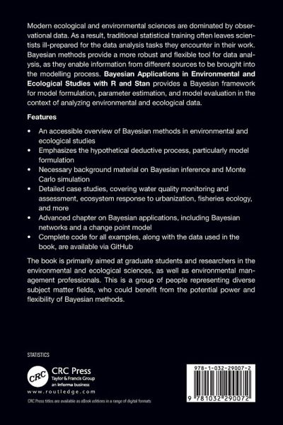 Song S. Qian is a professor at The University of Toledo, Department of Environmental Sciences. He earned a PhD in environmental sciences and an MS in statistics from Duke University. He has worked in both environmental consulting and academia for more than 25 years. His work is focused on the application of statistics in environmental and ecological data analysis and modeling. His publication of such applications cover a wide range of topics, including wetland nutrient retention, lake eutrophication, water quality compliance assessment, drinking water safety, fisheries management, effects of climate change, and quantitative chemistry. He has taught graduate-level applied statistics to students in environmental science and ecology for 25 years. He authored and co-authored more than 115 research papers in peer-reviewed journals and a book in environmental and ecological statistics (currently in its second edition). Mark R. DuFour earned a PhD in biology with a focus in ecology from The University of Toledo. He has worked in the fisheries field for more than 15 years, including periods with the New York State Department of Environmental Conservation and Ohio Department of Natural Resources. He is currently a fisheries biologist with the U.S. Geological Survey - Great Lakes Science Center. Dr. DuFour focuses on the quantitative aspects of fisheries science, seeks opportunities to apply Bayesian hierarchical modeling, and has contributed to 23 peer-reviewed publications. His quantitative training includes a combination of course work, diligent advisement, and on-the-job training through application. In contributing to this book, he hopes to encourage other science practitioners to look behind the statistical analysis curtain when developing ecological and environmental models. Ibrahim Alameddine is an associate professor at the American University of Beirut, Department of Civil and Environmental Engineering. He earned his PhD in environmental sciences from Duke University. His research interests focus on advancing environmental monitoring and assessment, particularly in freshwater systems suffering from anthropogenic eutrophication and harmful algal blooms. His work concentrates on advancing the use of statistics for the effective monitoring, modeling, and management of environmental systems. Dr. Alameddine has taught several graduate courses on environmental statistics, water quality modeling, and geospatial analysis. He has published more than 60 peer-reviewed manuscripts and scientific reports. In addition to his academic position, he serves as a consultant to several local and regional governmental bodies as well as international organizations working in the environmental field.