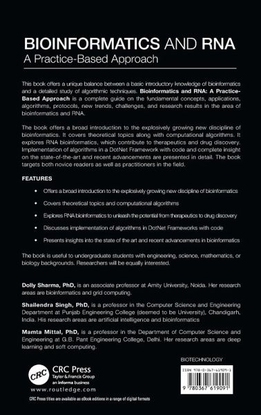 This book offers a unique balance between basic introductory knowledge of bioinformatics and the detailed study of algorithmic techniques. The book is a complete guide on the fundamental concepts, applications, algorithms, protocols, new trends, challenges, and research results in the area of bioinformatics and RNA.