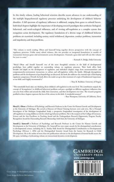 In this volume leading behavioral scientists describe advances in our understanding of the multiple biopsychosocial regulatory processes underlying the development of children's behavior disorders. A full spectrum of regulatory influences is addressed, ranging from genes to cultural factors. Individual chapters highlight the importance of developing research paradigms that synthesize biological, behavioral, and social-ecological influences, and of viewing self-regulation as a complex system that reorganizes across development. The regulatory foundations of a diverse range of childhood behavior problems are examined, including anxiety, social withdrawal, depression, conduct problems, inattention and impulsivity, and sleep problems.