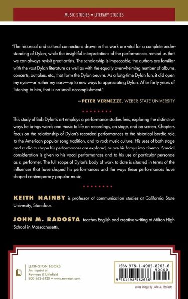 This study of Bob Dylan's art employs a performance studies lens, exploring the distinctive ways he brings words and music to life on recordings, onstage, and onscreen. Chapters focus on the relationship of Dylan's recorded performances to the historical bardic role, to the American popular song tradition, and to rock music culture. His uses of both stage and studio to shape his performances are explored, as are his forays into cinema. Special consideration is given to his vocal performances and to his use of particular personae as a performer. The full scope of Dylan's body of work to date is situated in terms of the influences that have shaped his performances and the ways these performances have shaped contemporary popular music.
