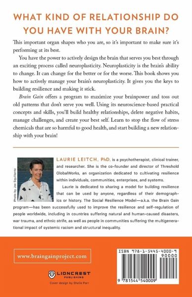 What kind of relationship do you have with your brain? This important organ shapes who you are, so it's important to make sure it's performing at its best. You have the power to actively design the brain that serves you best through an exciting process called neuroplasticity. Neuroplasticity is the brain's ability to change. It can change for the better or for the worse. This book shows you how to actively manage your brain's neuroplasticity. It gives you the keys to building resilience and making it stick. Brain Gain offers a program to maximize your brainpower and toss out old patterns. Using its neuroscience-based practical concepts and skills, you'll build healthy relationships, delete negative habits, manage challenges, and create your best self. Learn to stop the flow of stress chemicals that are so harmful to good health, and start building a new relationship with your brain!