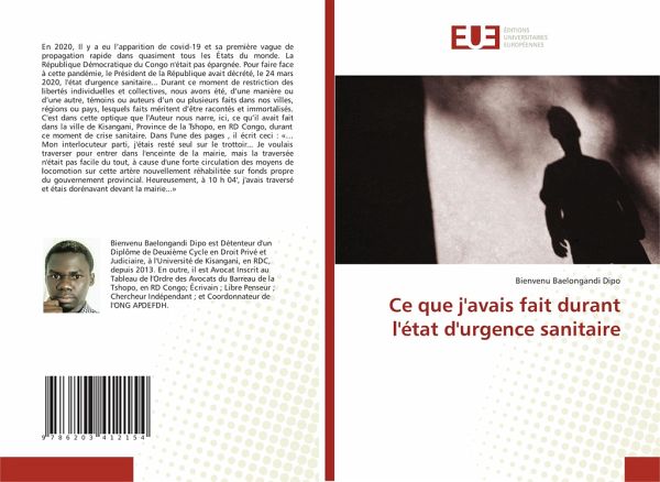 En 2020, Il y a eu l'apparition de covid-19 et sa première vague de propagation rapide dans quasiment tous les États du monde. La République Démocratique du Congo n'était pas épargnée. Pour faire face à cette pandémie, le Président de la République avait décrété, le 24 mars 2020, l'état d'urgence sanitaire... Durant ce moment de restriction des libertés individuelles et collectives, nous avons été, d'une manière ou d'une autre, témoins ou auteurs d'un ou plusieurs faits dans nos villes, régions ou pays, lesquels faits méritent d'être racontés et immortalisés. C'est dan...