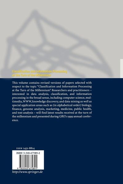 This volume contains revised versions of selected papers presented dur ing the 23rd Annual Conference of the German Classification Society GfKl (Gesellschaft fiir Klassifikation). The conference took place at the Univer sity of Bielefeld (Germany) in March 1999 under the title "Classification and Information Processing at the Turn of the Millennium". Researchers and practitioners - interested in data analysis, classification, and information processing in the broad sense, including computer science, multimedia, WWW, knowledge discovery, and data mining as well as spe cial application areas such as (in alphabetical order) biology, finance, genome analysis, marketing, medicine, public health, and text analysis - had the op portunity to discuss recent developments and to establish cross-disciplinary cooperation in their fields of interest. Additionally, software and book pre sentations as well as several tutorial courses were organized. The scientific program of the conference included 18 plenary or semi plenary lectures and more than 100 presentations in special sections. The peer-reviewed papers are presented in 5 chapters as follows: - Data Analysis and Classification - Computer Science, Computational Statistics, and Data Mining - Management Science, Marketing, and Finance - Biology, Genome Analysis, and Medicine - Text Analysis and Information Retrieval As an unambiguous assignment of results to single chapters is sometimes difficult papers are grouped in a way that the editors found appropriate.