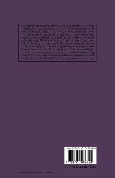 The papers contained herein were presented at the Fifth International Conference on Composite Structures (ICCS/5) held at Paisley College of Technology, Scotland in July 1989. The conference was organised and sponsored by Paisley College of Technology. It was co-sponsored by the Scottish Development Agency, the National Engineering Laboratory, the US Air Force European Office of Aerospace Research and Development, the US Army Research, Development and Standardisation Group-UK, Strathclyde Regional Council and Renfrew District Council. It forms a natural and ongoing progression from the highly successful ICCS/1/2/3 and /4 held at Paisley in 1981, 1983, 1985 and 1987 respectively. It has often been said that at the end of each decade there is much to be gained by reflecting on the manifold factors that have influenced the path of one's life. Doubtless there is much truth in that ancient adage. since it is only by subjectively considering the past that a glimmer of the future is possible.