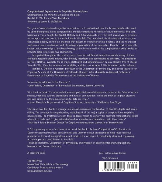 This text, based on a course taught by Randall O'Reilly and Yuko Munakata over the past several years, provides an in-depth introduction to the main ideas in the computational cognitive neuroscience. The goal of computational cognitive neuroscience is to understand how the brain embodies the mind by using biologically based computational models comprising networks of neuronlike units. This text, based on a course taught by Randall O'Reilly and Yuko Munakata over the past several years, provides an in-depth introduction to the main ideas in the field. The neural units in the simulations use equ...