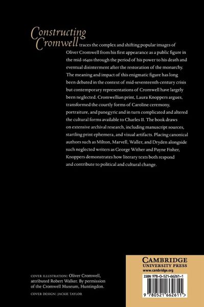 Constructing Cromwell traces the complex and shifting popular images of Oliver Cromwell from his first appearance as a public figure in the mid-1640s through the period of his power to his death and eventual disinterment after the restoration of the monarchy. The meaning and impact of this enigmatic figure has long been debated in the context of mid seventeenth-century crisis but contemporary representations of Cromwell have largely been neglected. Cromwellian print, Laura Knoppers argues, transformed the courtly forms of Caroline ceremony, portraiture and panegyric and in turn complicated and altered the cultural forms available to Charles II. The book draws on extensive archival research, including manuscript sources, startling print ephemera, and visual artefacts. Placing canonical authors such as Milton, Marvell, Waller and Dryden alongside such neglected writers as George Wither and Payne Fisher, Knoppers demonstrates how literary texts both respond and contribute to political and cultural change.