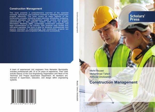 This book presents a comprehensive overview of the essential concepts, techniques, and practices involved in managing construction projects effectively. The book covers all major aspects of the construction process, including project planning, scheduling, budgeting, resource allocation, risk management, quality control, and contract administration. It also explores modern tools such as Building Information Modeling (BIM), sustainable construction practices, and legal considerations in the industry. With practical case studies and real-world examples, this book is ideal for students, professionals, and anyone interested in understanding how construction projects are initiated, executed, and completed efficiently and successfully.