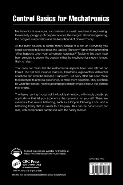 All too many courses in control theory consist of a diet of 'Everything you could ever need to know about the Laplace Transform' rather than answering 'What happens when your servomotor saturates?' Topics in this book have been selected to answer the questions that the mechatronics student is most likely to raise.That does not mean that the mathematical aspects have been left out, far from it. The diet here includes matrices, transforms, eigenvectors, differential equations and even the dreaded z transform. But every effort has been made to relate them to practical experience, to make them digestible. They are there for what they can do, not to support pages of mathematical rigour that defines their origins.
