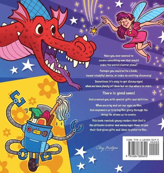 Have you ever wanted to create something new that would make the world a better place? Perhaps you could write a book, invent a helpful device, or make an exciting discovery! Sometimes it's easy to get discouraged when we have plenty of ideas but no clue where to start. There is good news! God created you with special gifts and abilities. When we pray and set our eyes on Him, God empowers us to bring Him glory through the things He allows us to create. This book reminds young readers that God is the ultimate creator and encourages them to use their God-given gifts and ideas to point to Him .