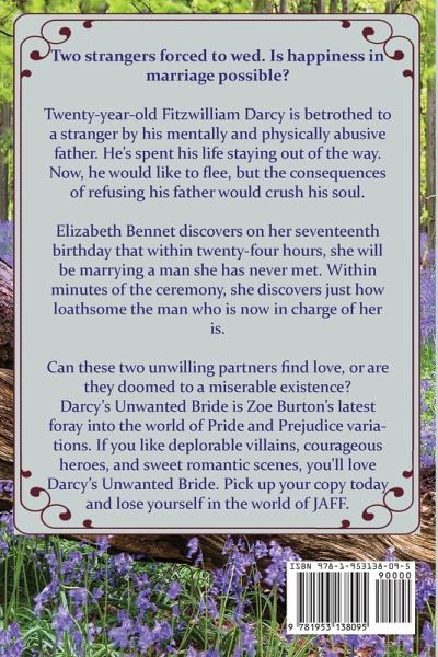 Two strangers forced to wed. Is happiness in marriage possible? Twenty-year-old Fitzwilliam Darcy is betrothed to a stranger by his mentally and physically abusive father. He's spent his life staying out of the way. Now, he would like to flee, but the consequences of refusing his father would crush his soul. Elizabeth Bennet discovers on her seventeenth birthday that within twenty-four hours, she will be marrying a man she has never met. Within minutes of the ceremony, she discovers just how loathsome the man who is now in charge of her is. Can these two unwilling partners find love, or are they doomed to a miserable existence? Darcy's Unwanted Bride is Zoe Burton's latest foray into the world of Pride and Prejudice variations. If you like deplorable villains, courageous heroes, and sweet romantic scenes, you'll love Darcy's Unwanted Bride. Pick up your copy today and lose yourself in the world of JAFF.