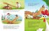 Kurze leicht verständliche Texte , umschreiben das was die Illustrationen darstellen. Wer kommt schon auf die Idee , das ein Fisch auf dem Dach landet ?