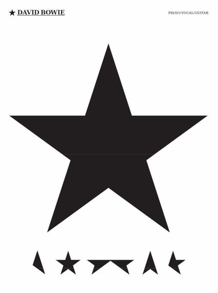 Every song from the late, great David Bowie 's number one album Blackstar (?), arranged for Piano, Voice and Guitar, with full lyrics, chord symbols and chord boxes.