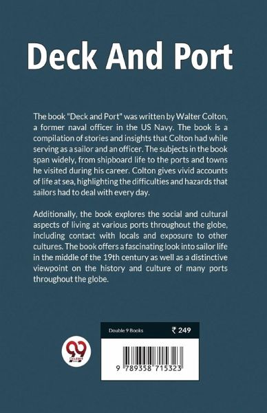 The book "Deck and Port" was written by Walter Colton, a former naval officer in the US Navy. The book is a compilation of stories and insights that Colton had while serving as a sailor and an officer. The subjects in the book span widely, from shipboard life to the ports and towns he visited during his career. Colton gives vivid accounts of life at sea, highlighting the difficulties and hazards that sailors had to deal with every day. Additionally, the book explores the social and cultural aspects of living at various ports throughout the globe, including contact with locals and exposure to o...