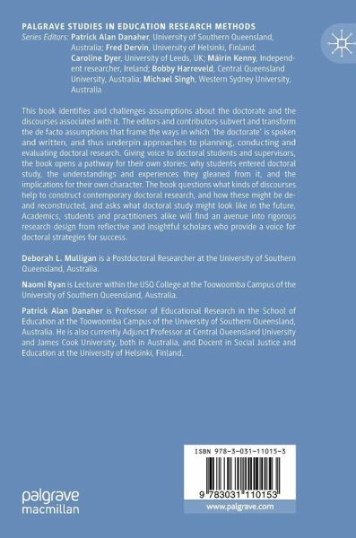 This book identifies and challenges assumptions about the doctorate and the discourses associated with it. The editors and contributors subvert and transform the de facto assumptions that frame the ways in which 'the doctorate' is spoken and written, and thus underpin approaches to planning, conducting and evaluating doctoral research. Giving voice to doctoral students and supervisors, the book opens a pathway for their own stories: why students entered doctoral study, the understandings and experiences they gleaned from it, and the implications for their own character. The book questions what kinds of discourses help to construct contemporary doctoral research, and how these might be de- and reconstructed, and asks what doctoral study might look like in the future. Academics, students and practitioners alike will find an avenue into rigorous research design from reflective and insightful scholars who provide a voice for doctoral strategies for success.