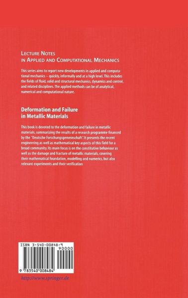 This book is devoted to the deformation and failure in metallic materials, summarizing the results of a research programme financed by the "Deutsche Forschungsgemeinschaft". It presents the recent engineering as well as mathematical key aspects of this field for a broad community. Its main focus is on the constitutive behaviour as well as the damage and fracture of metallic materials, covering their mathematical foundation, modelling and numerics, but also relevant experiments and their verification.