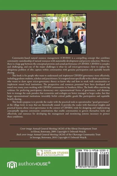 Community-based natural resource management (CBNRM) is a compelling concept that combines community custodianship of natural resources with sustainable development and poverty reduction. However, there is a large gap between the conceptual promise and actual performance of CBNRM. CBNRM is complex and challenging, and one of the major challenges is what we call micro-governance-how to replace the ubiquitous problem of elite capture within communities with genuine participation and equitable benefit sharing. This book is for people want to understand and implement CBNRM governance more effectively, including graduate students, scholars and practitioners. It is targeted most specifically at the scholar-practitioner who wants to draw upon micro-governance theory to know why and how to work with communities to implement sound local institutions. The perspectives and resources presented have been developed and tested over many years working with CBNRM communities in southern Africa. The book offers convincing evidence for preferring participatory democracy over representational forms of governance, and discusses how to manage the scale paradox that economies and ecologies are better managed at larger scales, but that larger representational institutions invariably forfeit critical public goods like participation and equitable benefit sharing. The book's purpose is to provide the reader with the practical tools to operationalize "good governance" at the village level, in ways that are theoretically sound. It provides the reader with theoretical insights and practical lessons about micro-governance in the context of CBNRM, tools for designing and implementing conceptually rigorous community constitutions that enable communities to govern themselves fairly and effectively, and resources for developing the management and monitoring systems necessary to protect these conditions.