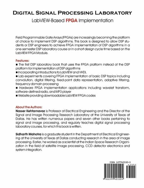 Field Programmable Gate Arrays (FPGAs) are increasingly becoming the platform of choice to implement DSP algorithms. This book is designed to allow DSP students or DSP engineers to achieve FPGA implementation of DSP algorithms in a one-semester DSP laboratory course or in a short design cycle time based on the LabVIEW FPGA Module. Features: - The first DSP laboratory book that uses the FPGA platform instead of the DSP platform for implementation of DSP algorithms - Incorporating introductions to LabVIEW and VHDL - Lab experiments covering FPGA implementation of basic DSP topics including convolution, digital filtering, fixed-point data representation, adaptive filtering, frequency domain processing - Hardware FPGA implementation applications including wavelet transform, software-defined radio, and MP3 player - Website providing downloadable LabVIEW FPGA codes