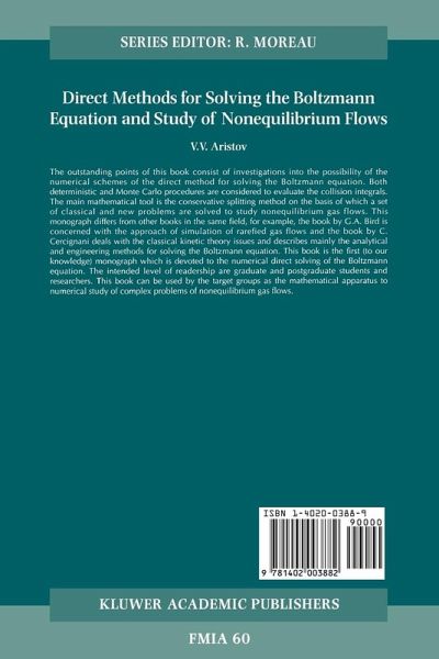 This book is concerned with the methods of solving the nonlinear Boltz mann equation and of investigating its possibilities for describing some aerodynamic and physical problems. This monograph is a sequel to the book 'Numerical direct solutions of the kinetic Boltzmann equation' (in Russian) which was written with F. G. Tcheremissine and published by the Computing Center of the Russian Academy of Sciences some years ago. The main purposes of these two books are almost similar, namely, the study of nonequilibrium gas flows on the basis of direct integration of the kinetic equations. Neverthele...