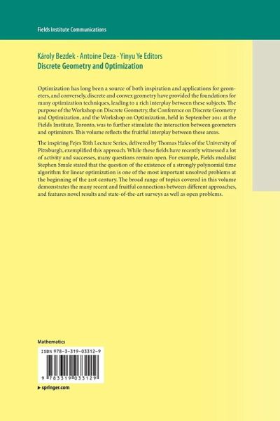 The inspiring Fejes Tóth Lecture Series, delivered by Thomas Hales of the University of Pittsburgh, exemplified this approach. While these fields have recently witnessed a lot of activity and successes, many questions remain open. For example, Fields medalist Stephen Smale stated that the question of the existence of a strongly polynomial time algorithm for linear optimization is one of the most important unsolved problems at the beginning of the 21st century. The broad range of topics covered in this volume demonstrates the many recent and fruitful connections between different approaches, and features novel results and state-of-the-art surveys as well as open problems.