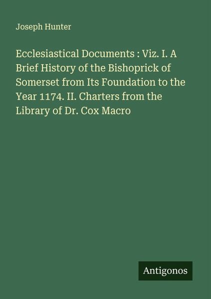 Ecclesiastical Documents : Viz. I. A Brief History of the Bishoprick of Somerset from Its Foundation to the Year 1174. II. Charters from the Library of Dr. Cox Macro