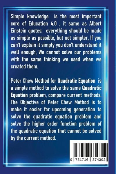 Education 4.0 Knowledge. Peter Chew Method For Quadratic Equation