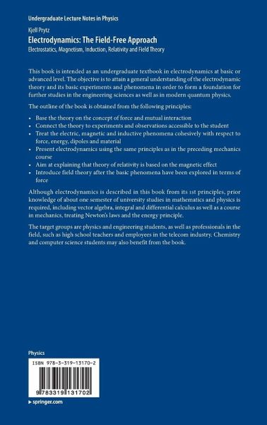 This book is intended as an undergraduate textbook in electrodynamics at basic or advanced level. The objective is to attain a general understanding of the electrodynamic theory and its basic experiments and phenomena in order to form a foundation for further studies in the engineering sciences as well as in modern quantum physics.The outline of the book is obtained from the following principles:- Base the theory on the concept of force and mutual interaction- Connect the theory to experiments and observations accessible to the student- Treat the electric, magnetic and inductive phenomena cohe...