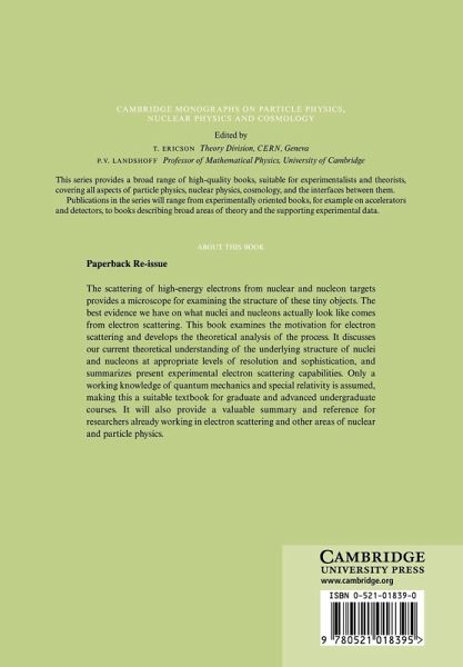 The scattering of high-energy electrons from nuclear and nucleon targets provides a microscope for examining the structure of these tiny objects. The best evidence we have on what nuclei and nucleons actually look like comes from electron scattering. This 2001 book examines the motivation for electron scattering and develops the theoretical analysis of the process. It discusses our current theoretical understanding of the underlying structure of nuclei and nucleons at appropriate levels of resolution and sophistication, and summarizes present experimental electron scattering capabilities. Only a working knowledge of quantum mechanics and special relativity is assumed, making this a suitable textbook for graduate and advanced undergraduate courses. It will also provide a valuable summary and reference for researchers already working in electron scattering and other areas of nuclear/particle physics.