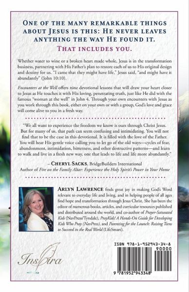 One of the many remarkable things about Jesus is this:He never leaves anything the way He found it. That includes you. Whether water to wine or a broken heart made whole, Jesus is in the transformation business, partnering with His Father's plan to restore each of us to His original design and destiny for us. "I came that they might have life," Jesus said, "and might have it abundantly" (John 10:10). Encounters at the Well will provide you with nine devotional lessons that will draw your heart closer to Jesus as He touches it with His loving, penetrating truth, just like He did with the famous "woman at the well" in John 4 in the Bible. Through your own encounters with Jesus as you work through pages of this book, either on your own or with a group, God's love and grace will come alive to you in a fresh way. Your heart will be renewed and transformed, so you can increasingly experience the life of joy and freedom He intended you to live!