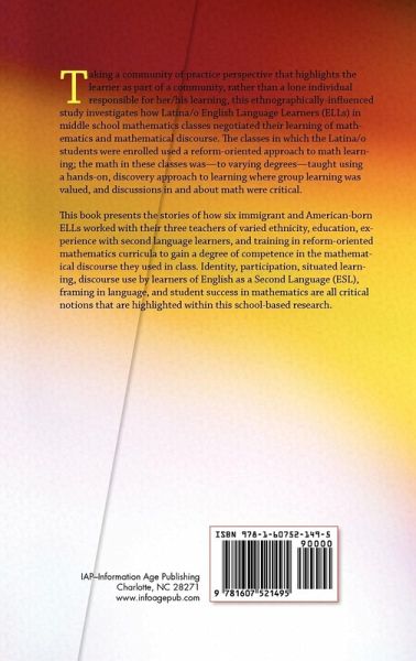 Taking a community of practice perspective that highlights the learner as part of a community, rather than a lone individual responsible for her/his learning, this ethnographically-influenced study investigates how Latina/o English Language Learners (ELLs) in middle school mathematics classes negotiated their learning of mathematics and mathematical discourse. The classes in which the Latina/o students were enrolled used a reform-oriented approach to math learning; the math in these classes was-to varying degrees-taught using a hands-on, discovery approach to learning where group learning was valued, and discussions in and about math were critical. This book presents the stories of how six immigrant and American-born ELLs worked with their three teachers of varied ethnicity, education, experience with second language learners, and training in reform-oriented mathematics curricula to gain a degree of competence in the mathematical discourse they used in class. Identity, participation, situated learning, discourse use by learners of English as a Second Language (ESL), framing in language, and student success in mathematics are all critical notions that are highlighted within this school-based research.
