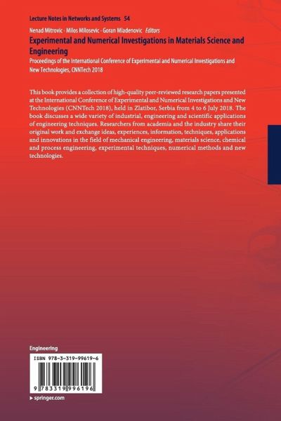 This book provides a collection of high-quality peer-reviewed research papers presented at the International Conference of Experimental and Numerical Investigations and New Technologies (CNNTech2018), held in Zlatibor, Serbia from 4 to 6 July 2018. The book discusses a wide variety of industrial, engineering and scientific applications of engineering techniques. Researchers from academia and the industry share their original work and exchange ideas, experiences, information, techniques, applications and innovations in the field of mechanical engineering, materials science, chemical and process engineering, experimental techniques, numerical methods and new technologies.