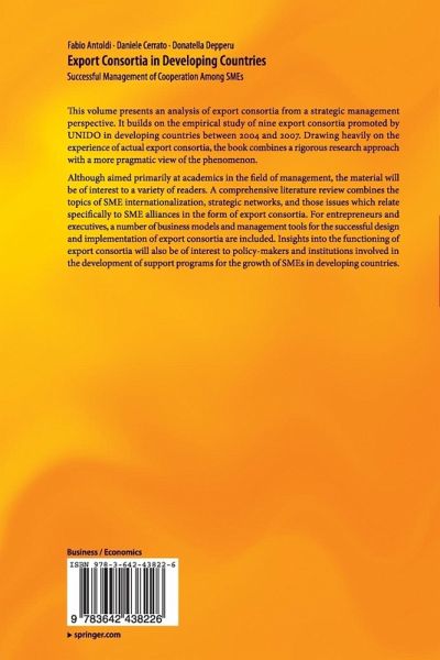 The book analyzes export consortia from the strategic management perspective. It builds on an empirical analysis of nine export consortia promoted by UNIDO in developing countries between 2004 and 2007. The book is based heavily on actual export consortium experiences, in order to combine a rigorous research approach with a more pragmatic view of the phenomenon. The material will be of interest to a variety of readers. Scholars in the field of management represent the authors' primary target. The book includes a literature review which combines the topics of SME internationalization, strategic networks, and the issues which relate specifically to SME alliances in the form of export consortia. Entrepreneurs and executives will find useful business models and management tools for the successful design and implementation of export consortia. Insights into the functioning of export consortia may also be of interest to policy-makers and institutions that develop support programs for the growth of SMEs in developing countries.
