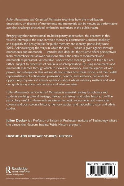 Fallen Monuments and Contested Memorials is essential reading for scholars and students studying cultural heritage, history, art history, and public history. It will be particularly useful to those with an interest in public monuments and memorials; colonial and post-colonial history; memory studies; and nationalism, race, and ethnic studies.