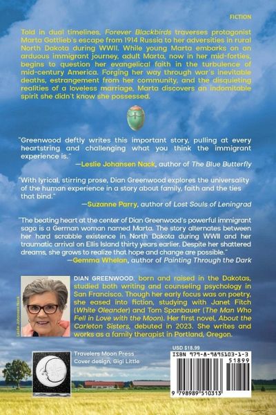 Told in dual timelines, Forever Blackbirds traverses protagonist Marta Gottlieb's escape from 1914 Russia to her tribulations in rural North Dakota during WWII. Young Marta, now in her mid-forties, begins to question her evangelical faith in the turbulence of mid-century America and another war. Forging her way through the loss of a son, estrangement from her community, and the disquieting reality of a loveless marriage, Marta discovers an indomitable spirit she didn't know she possesses.